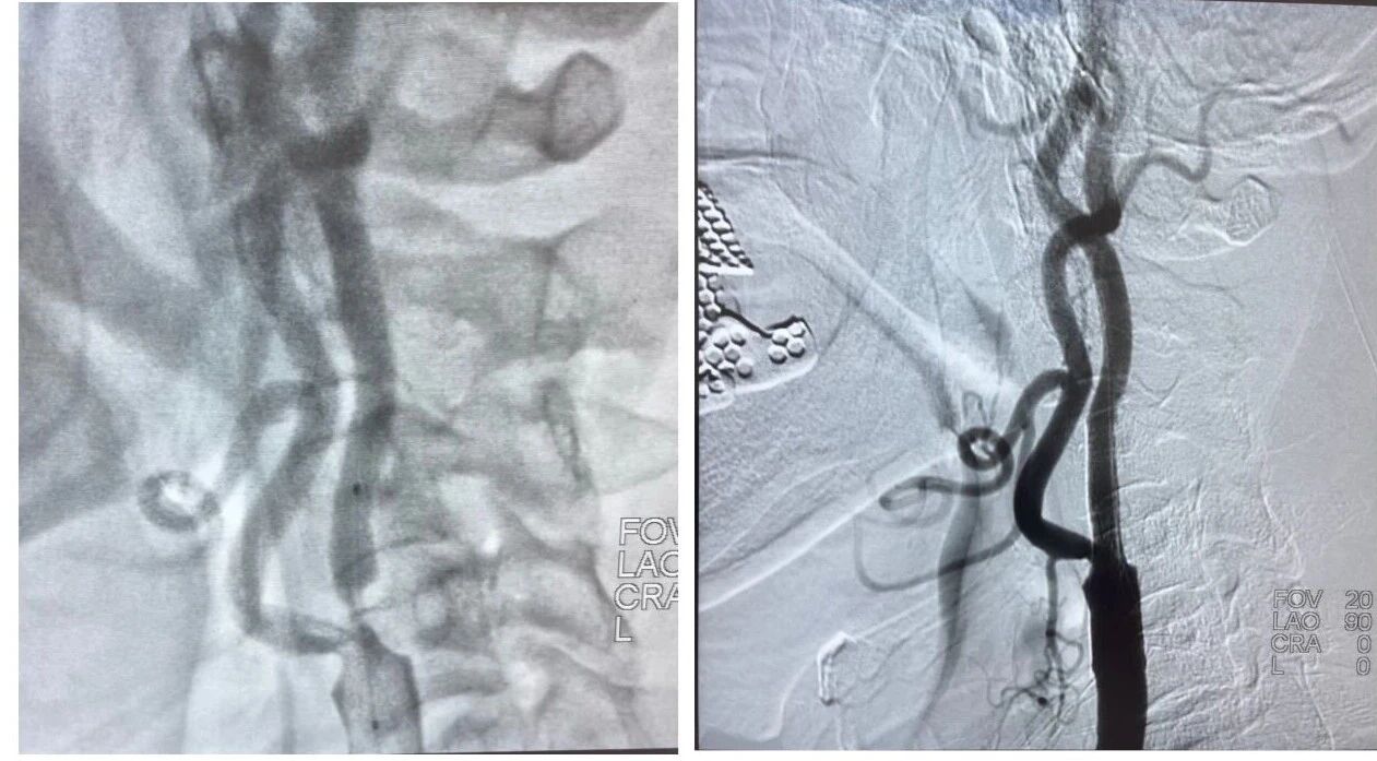 手术中,赵旭主任精准定位狭窄血管,小心翼翼地将支架送至病变处并顺利释放,术后患者血管狭窄情况得到显著改善,头晕、麻木症状彻底消失,生活质量大幅提升。