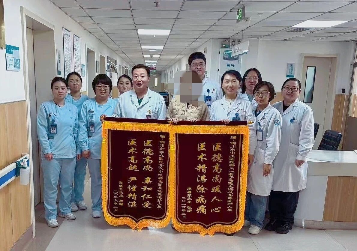 目前,患者张先生在我院神经内一科医护人员的精心照料下,病情持续好转,肢体功能正逐步恢复。家属对我院医护人员争分夺秒的紧急救治、精湛专业的医疗技术感激不已,送来锦旗。这份信任与认可,更是我们不断精进医术、守护百姓健康的不竭动力。