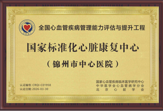国家标准化心脏康复中心认证,是国内心脏康复领域含金量极高的权威认证,也是对医院心脏康复综合实力、专业水平的最高认可。此次成功获批,见证了锦州市中心医院心脏康复中心从筹建到进阶、从规范到卓越的坚实步伐,更为辽西地区心血管疾病患者搭建起全周期、高品质的健康守护平台。