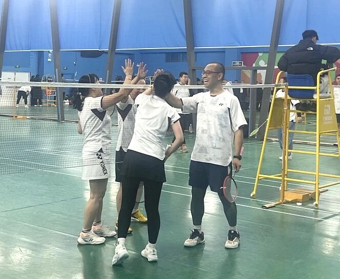 四片场地同时燃起战火,白衣战士化身羽坛骁将,场上是对手,更是家人;场下是同事,更是战友。每一次得分后的击掌,每一句失误后的"没关系",都传递着"家文化"的温度。
