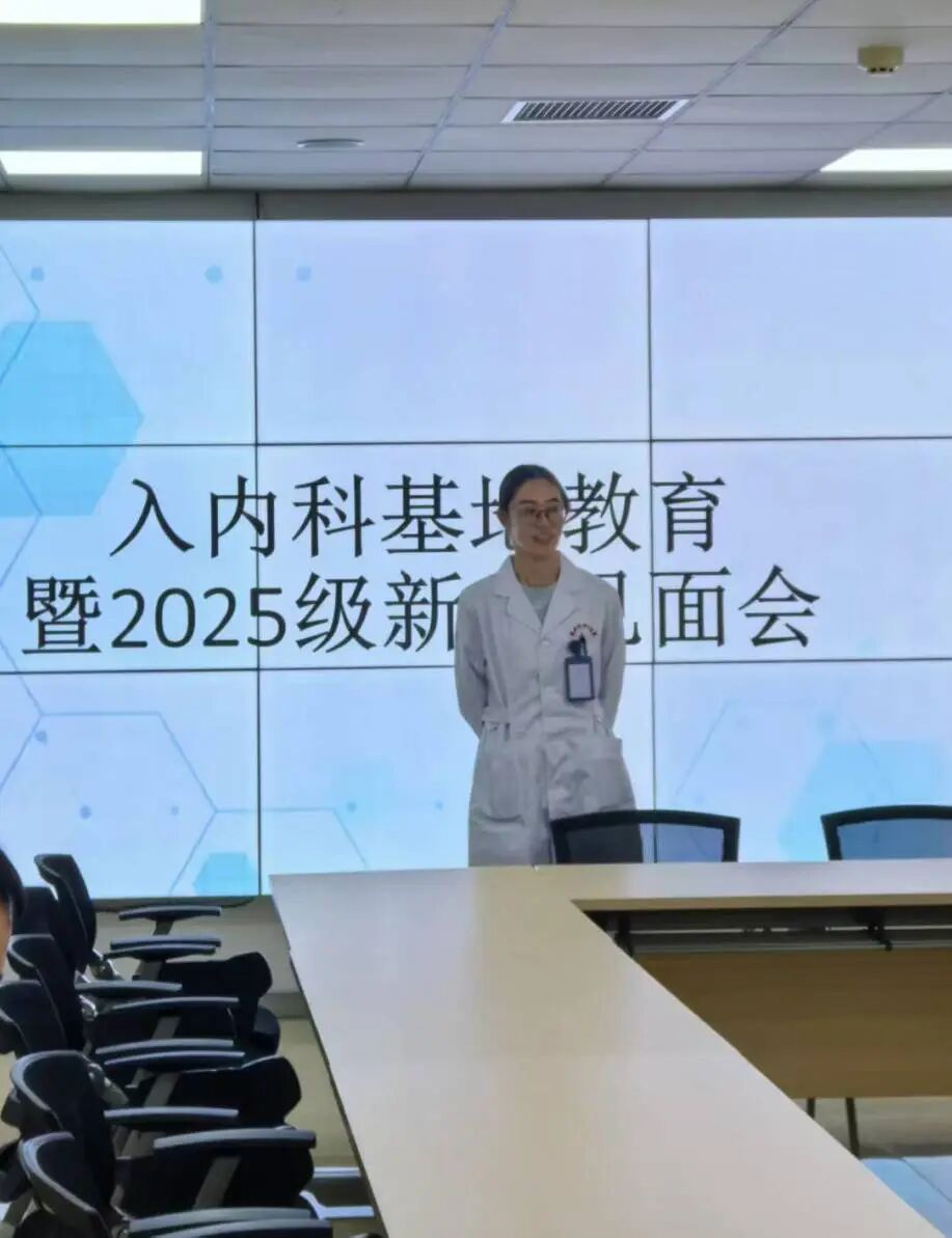 为了使2025级住培新学员更快的适应新环境,了解专业基地的基本情况,引导住培学员树立正确的医学人文精神,使入基地教育与入院教育、轮转科室教育等相互衔接,帮助住院医师顺利完成从学生到临床医师的角色转变,锦州市中心医院内科住培基地于9月19日举办了“2025级住培学员入内科基地教育暨新生见面会”。活动由内科住培基地秘书高明医生主持。内科教研室主任、内科住培基地主任王雪鹰,内科住培基地教学主任王钢,呼吸科主任刘锦,肾内一科主任刘涛,心内一科主任于洪伟,心内二科主任姜帅,2025级全体内科住培学员参加会议。