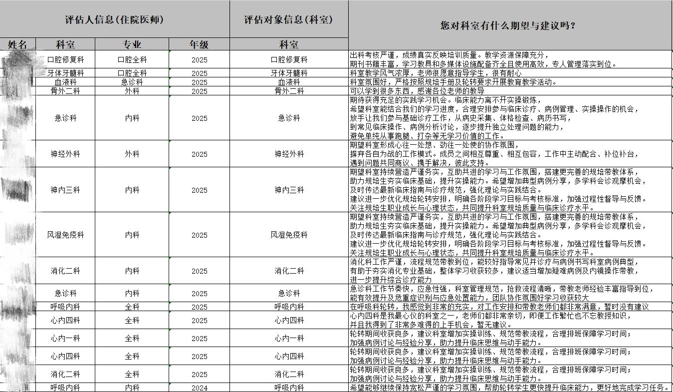 此次360度季度评估,反映了现阶段住培教学工作的成效与不足,为持续改进教学工作提供了重要依据。今后,科教科将常态化开展多维度教学评估,把反馈意见转化为改进工作的具体举措,不断强化过程管理、优化带教方式、完善培训体系,持续提升住培质量,用心培养基本功扎实、综合能力过硬的住院医师。